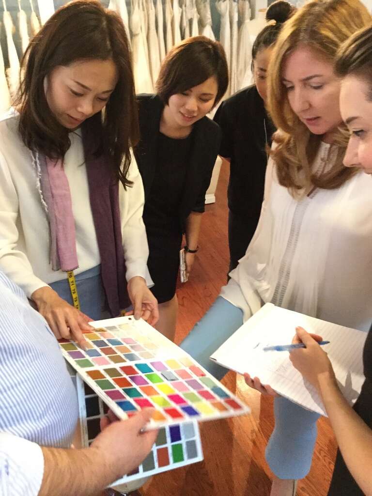 年4~5回ほどスタッフ自らがデザイナーのアトリエへ赴き、店舗へ仕入れるドレスを選びます