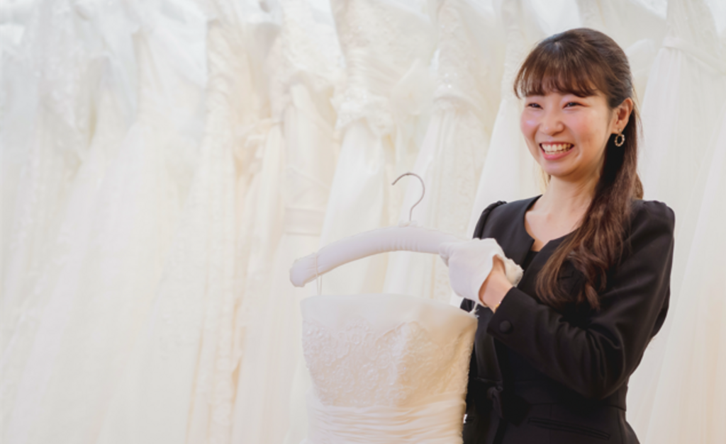 新郎新婦様のウエディングドレスやタキシード、和装などの衣装全般のコーディネートを担当し、お二人に最高の一着をご用意するお仕事です