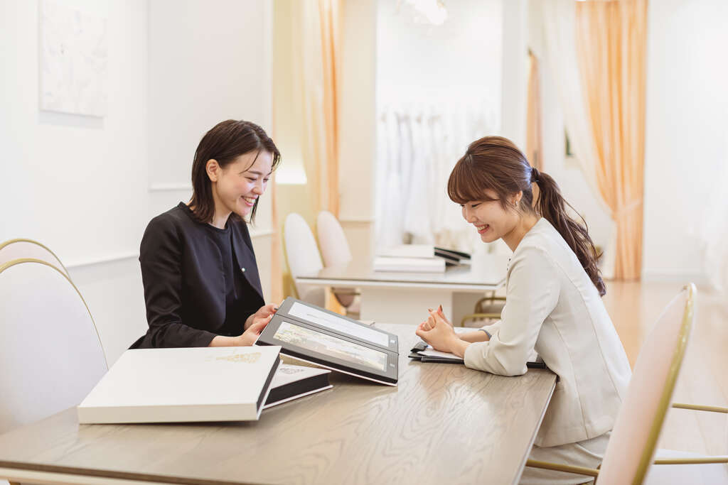 担当制で8ヶ月をかけて新郎新婦の衣装打ち合わせを担当していきます