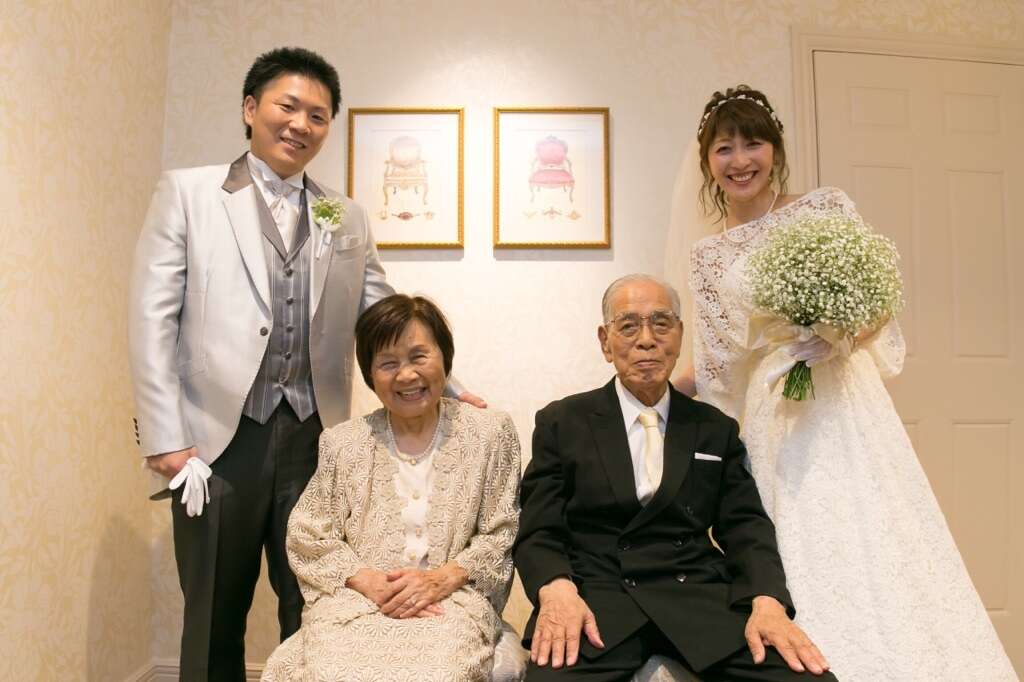 体調のことを考え挙式だけ参加してもらう新郎の祖父母とは、写真を撮る機会がないかもしれない……と悩んでいると、式の退場後に控室へ祖父母を誘導して、撮影をする時間を設けてくれました。