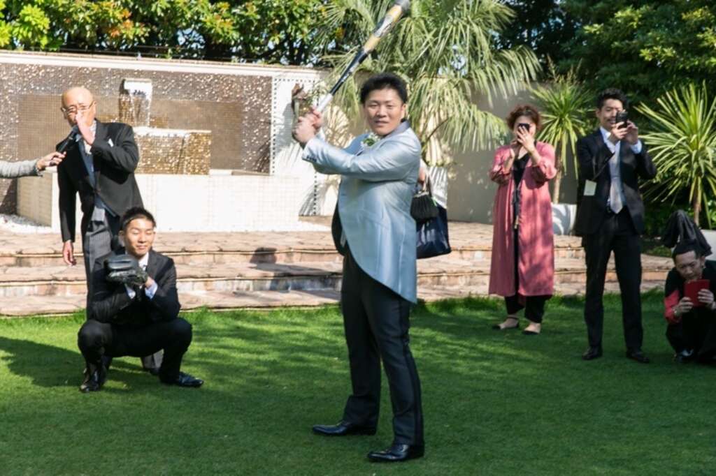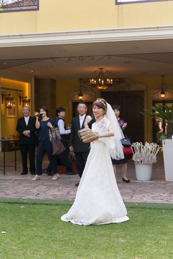 例えば、挙式のあとのブーケトスは既婚者が多いのでやらないと決めていましたが、何もしないで過ごすのも……と思っていたところ、新郎新婦の趣味でもある野球になぞらえて“始球式”を提案。当日ふたりもゲストも大いに盛り上がりました。