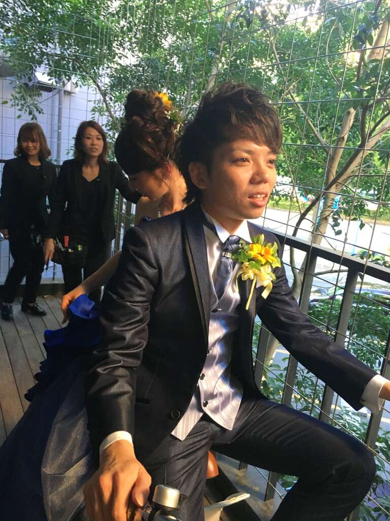 他にも、ご新郎さまが結婚式の間に作ったラーメンを持って来たり、ケーキではなくお肉を用意してかぶりついてファーストバイトをしたり、結婚式をやった8月19日(バイクの日)にちなんで、お色直しの際にお二人で三輪自転車に乗って入ってこられたりなど、本当に今までにないような結婚式になりました。