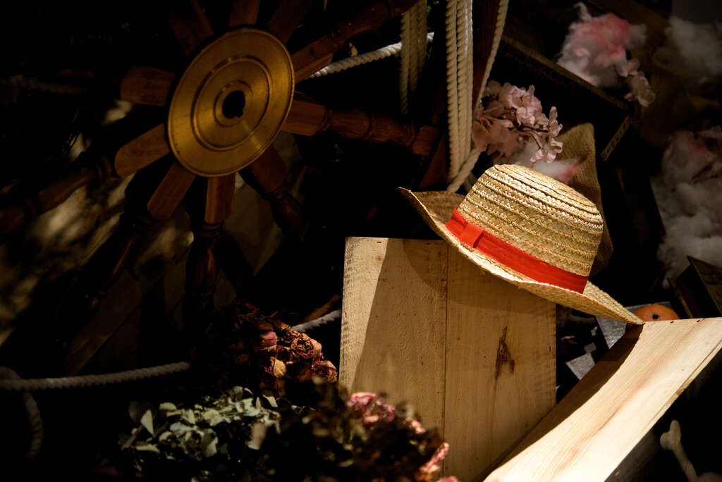 他にも、アニメ「ワンピース」が好きなおふたりが挙げられた結婚式では、新婦様がナミというキャラクターがお好きだったこともあり、ナミの家の庭にあるオレンジの木を再現することを提案。パーティ会場の入り口に本物のオレンジの実をつけた木を設置し、木の下にはルフィの麦わら帽子や、海賊旗のマークを付けた木箱を飾りました。受付では“友情の印”が描かれたリストバンドをお渡しして、人前式の結婚承認の際は、ゲストの皆さんに一斉に拳を上に掲げていただきました。再入場の際は、ルフィーの麦わら帽子をかぶっていただいたり…。私自身もマンガを読んで研究し、「こういうシーンありましたよね」とご提案させていただきました。