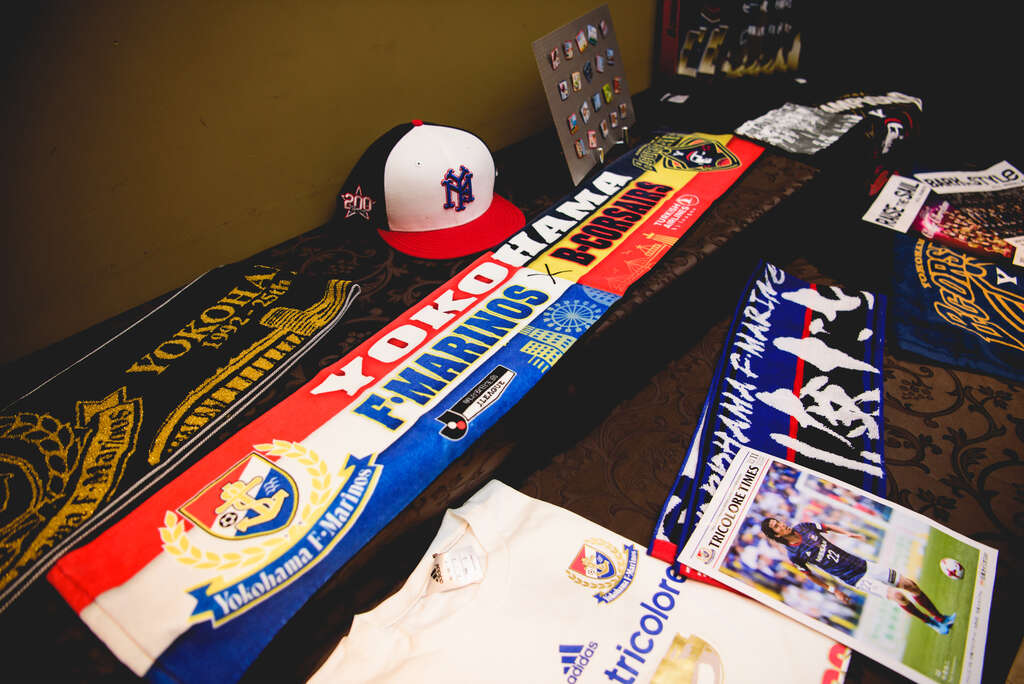 さらに、土地柄とても多いと感じるのは、「横浜愛」が強い新郎新婦様の結婚式です。横浜は、DeNAベイスターズやFCマリノスなどスポーツが盛んなので、サポーターの方も多くいらっしゃいます。ベイスターズファンの方には、ユニフォーム姿にビールサーバーを背負い応援歌「熱き星たちよ」をBGMにしてのご入場や、マリノスファンの方にはメインテーブルのお花をマリノスのチームカラーである青、赤、白のトリコロールカラーにすること、オープニング映像では、サッカー選手の入場シーンのように、ゲストの皆さんを選手に見立てて紹介させていただいたりといったいろいろなご提案をさせていただきました。ウェルカムスペースにもおふたりらしさを表現したいと心掛けていますので、ユニフォームやタオルなどのグッズを飾り、あたかもホームスタジアムを訪れた様な気持ちになって、皆さんに楽しんでいただけるようにしています。「横浜」という共通項があるためか、新郎新婦様だけでなく、ゲストの皆様にも盛り上がっていただけるので、そんな姿に感動させられることも多いです。