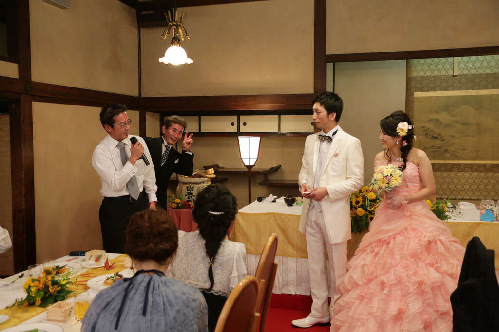 親御様の勧めで当館にいらっしゃったとのことでしたが、お話をしていくうちに、おふたりが私のことを頼りにしてくださるようになったことが嬉しかったですね。「この結婚式を絶対に成功させたい!」という気持ちになりました。親御様も打ち合わせに参加してくださり、新郎様の蝶ネクタイを手作りしていただいたりと、ご両家一丸となって準備を進めて参りました。特に当館の「神路の間」を気に入ってくださったので「和の雰囲気をとことん楽しみましょう」とご提案。装花はおふたりが大好きなひまわりでコーディネートし、ドレスの色当てやおみくじ配りなど、ゲストの皆様と触れ合う時間を多く設けさせていただきました。おみくじは、東京大神宮のおみくじを使用。神社らしい演出ということで、皆様に大変喜んでいただきました。