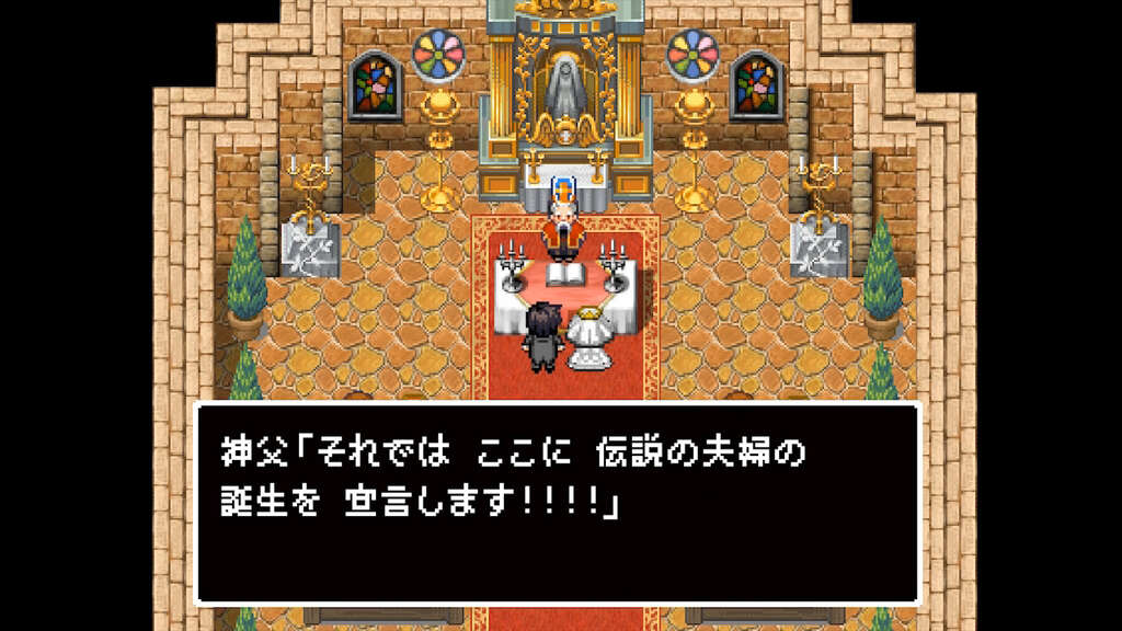 再婚の新郎様。離婚され、精神的に落ち込んだ時に支えてくれたのが今の新婦様だったとのこと。そこで、新郎はダメージを負った伝説の勇者、新婦はそんな新郎を立ち直らせた伝説の僧侶ということで、ドラゴンクエストならぬ【結婚クエスト】をテーマに。