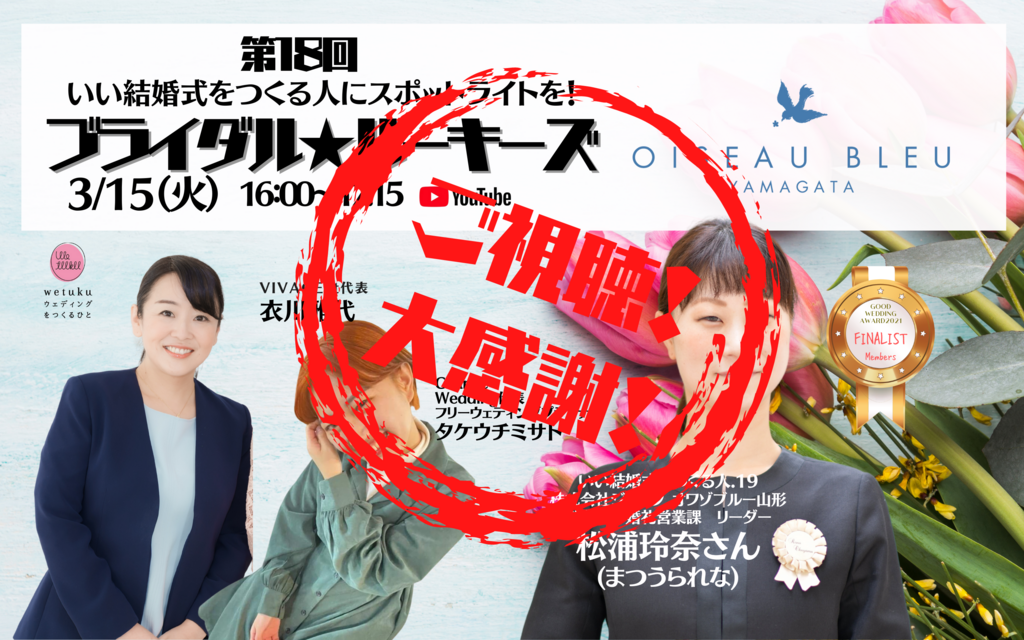 グッドウエディングアワードファイナリスト! 自分が携わることで「ありがとう」という気持ちをたくさん伝えたい