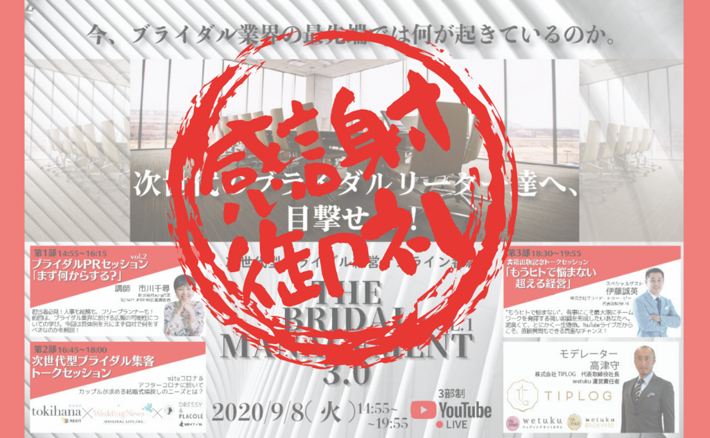 次回のTHE BRIDAL MANAGEMENT3.0は10/6火曜放送予定です!
